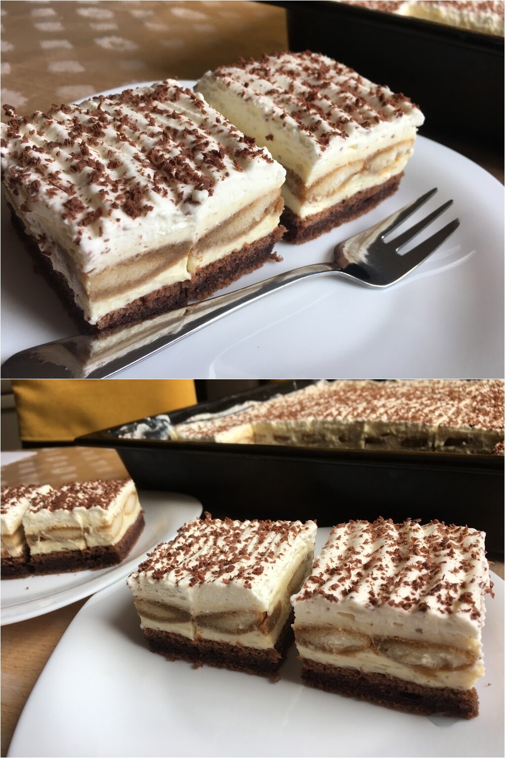 Die Sahne, der Pudding und dazwischen in Kaffee getunkte Löffelbiskuits – viel besser, kann ein Kuchen nicht werden. Ihr werdet diese Schnitte bestimmt lieben.